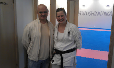 Storveis besøk på sommerleira til Tromsø karateklubb - Shihan Yakunin med meg som staffasje |